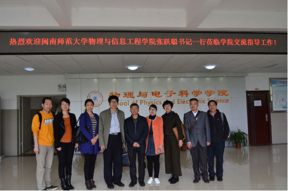 4月26日上午,闽南师范大学物理与信息工程学院院长张跃聪、物理教研室主任李秀燕、学科物理主任付丽萍、基础物理实验中心主任罗运文一行4人到物理与电子科学学院进行交流学习。双方在花溪校区物理与电子科学学院会议室举行座谈,学院党委书记陈世国、副院长宋晓书、党委副书记李应发、电信系主任刘万松、物理系主任沈光先等老师参加了本次座谈和交流。