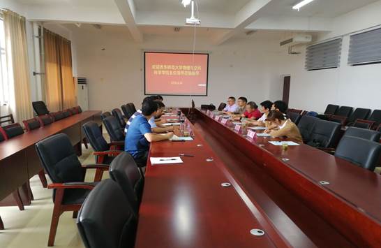 为加强学院之间的交流与合作,共同提高天文学科教学和科研建设水平,6月24日上午,西华师范大学物理与空间科学学院邓李才教授一行6人到物理与电子科学学院考察交流。物电学院党委书记陈世国、副院长肖文君、党委副书记苏醒、物理天文系副系主任吕兵、董爱军以及天文学科相关老师参与交流座谈。